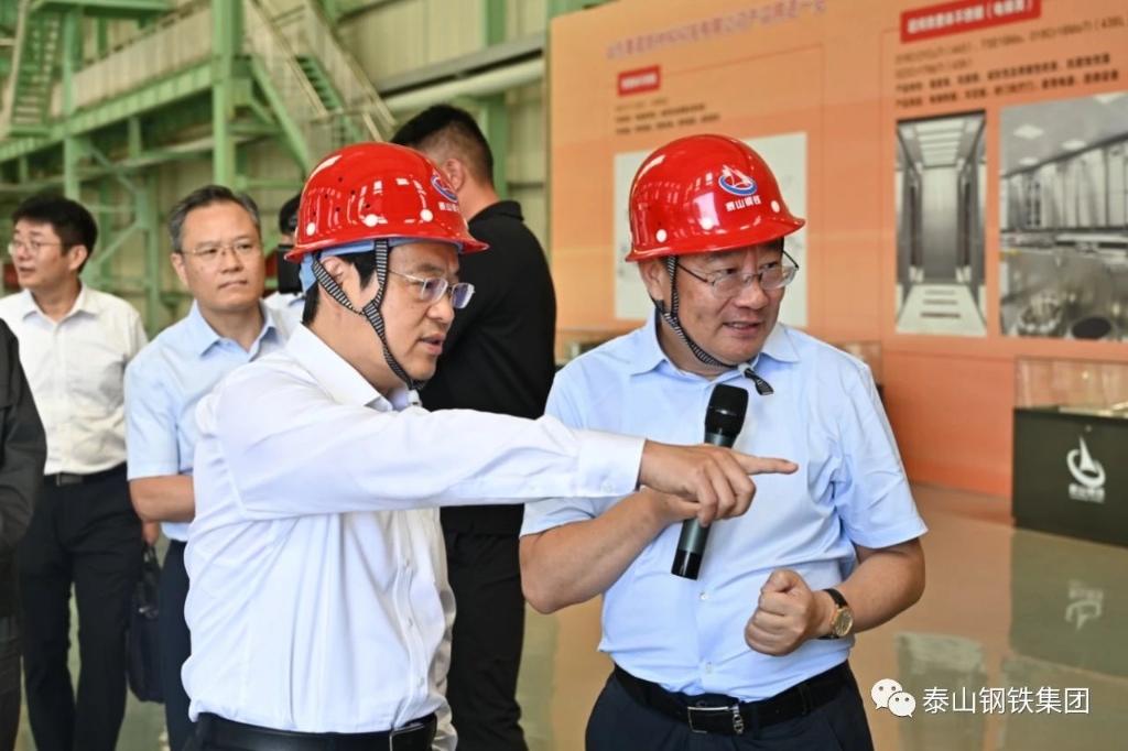 9月21日,省工业和信息化厅党组书记、厅长张海波到泰山钢铁集团调研。在泰嘉不锈钢冷轧板材深加工项目生产现场,泰山钢铁集团董事长、党委书记王永胜汇报了企业生产经营情况,制约企业发展的瓶颈,介绍了不锈钢冷轧工艺装备和产品销售情况,“时博(中国)精品钢绿色转型及雅鹿山片区城市更新项目”规划。